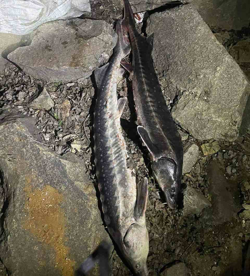Осетри, вилучені запорізькими рибоохоронцями в травні 2024 року. Фото надав Дмитро Євсеєв.