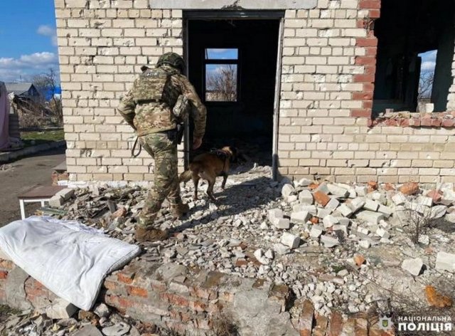 Молодший інспектор кінологічного центру ГУНП в Рівненській області Віталій Полтавченко у складі зведеного загону разом із вибухотехніками зачищають від ворожих «подарунків» територію Херсонської області.