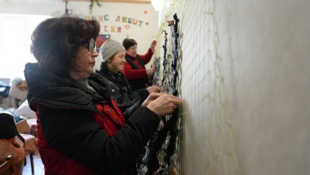 "Тут плету сітки, це допомога для наших хлопців, які служать. Ми дуже вдячні їм і бажаємо, щоб все, що ми робимо, їм допомогло. Я тут як взнала про це місце, то з серпня 2023 року я приходжу кожен день", — каже жінка.