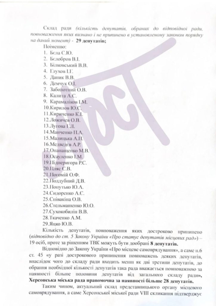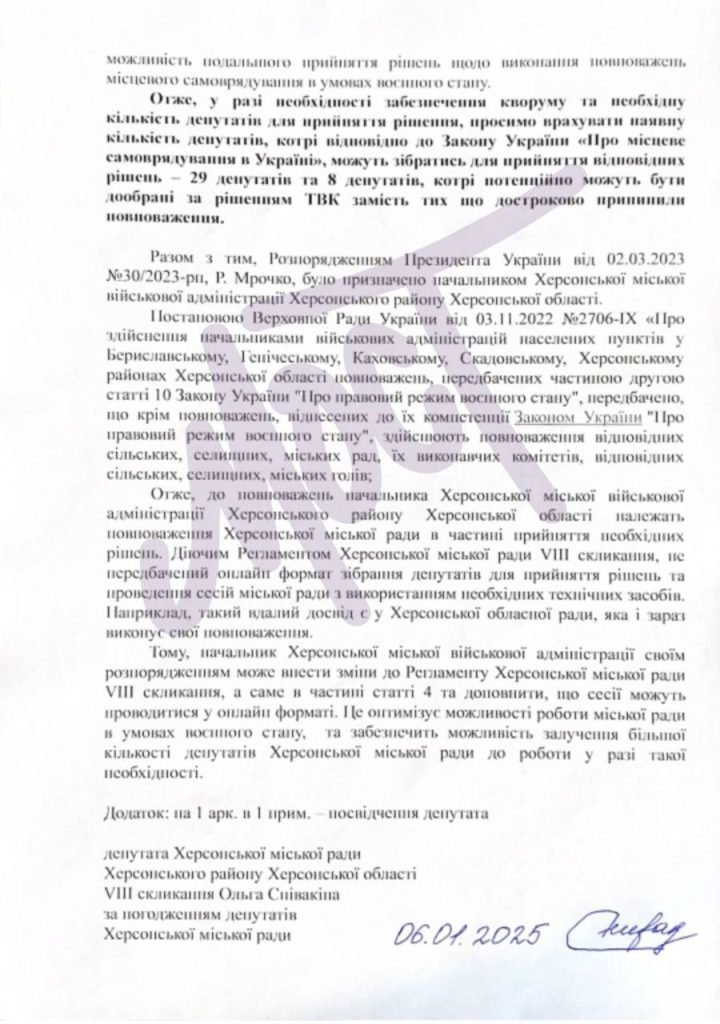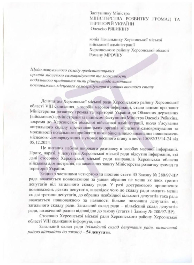 Мова йде про лист, який став реакцією депутатки на запит Міністерства про кворум у Херсонській міськраді.