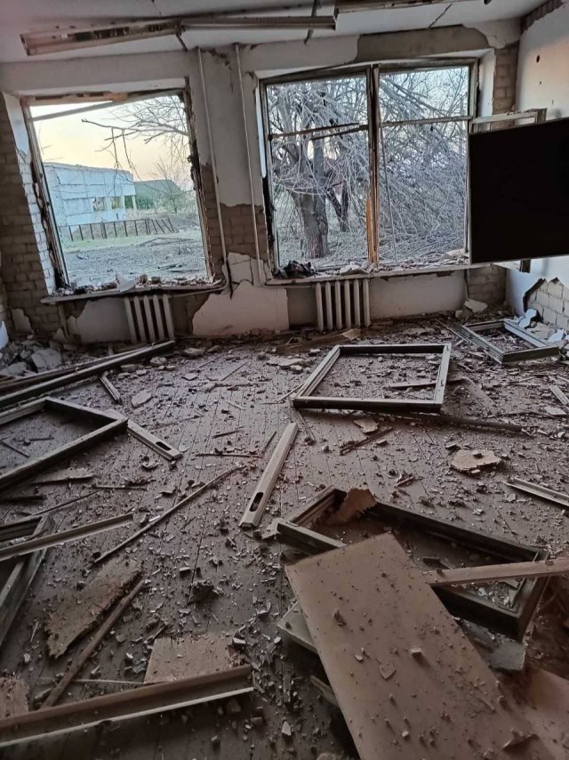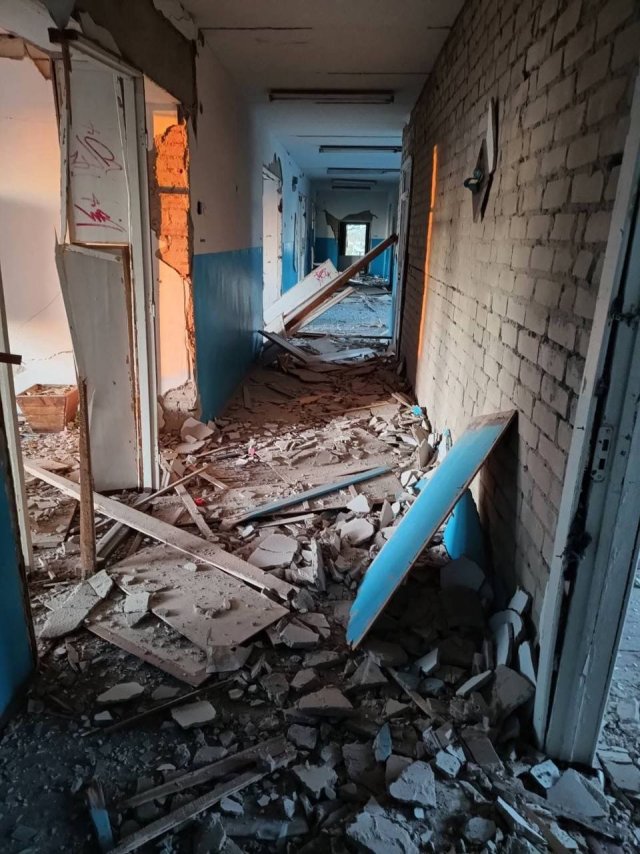 Будівля освітнього закладу зазнала серйозних руйнувань – пошкоджено покрівлю, навчальні класи, вибито вікна та двері.