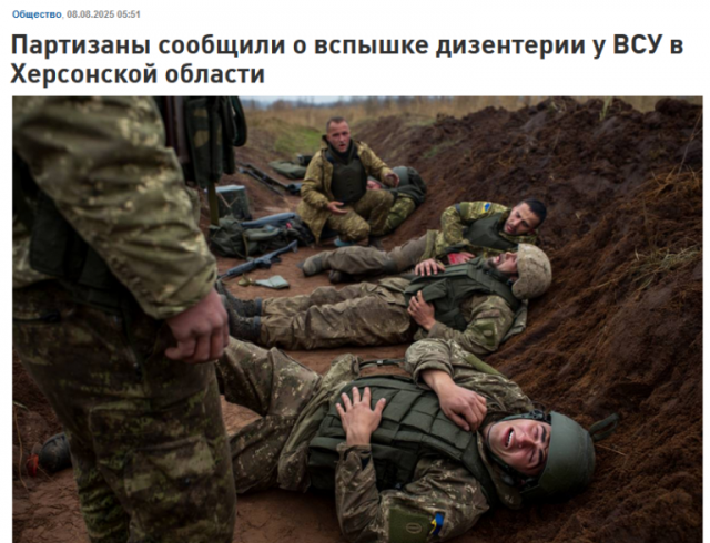“У низці підрозділів української армії, що розміщені на території Херсонської області, зафіксовано різке падіння боєготовності, місцями нижче 30 відсотків. Причиною стали масові випадки дизентерії або захворювань зі схожими симптомами”, – повідомили окупанти 8 серпня. 2025 року.