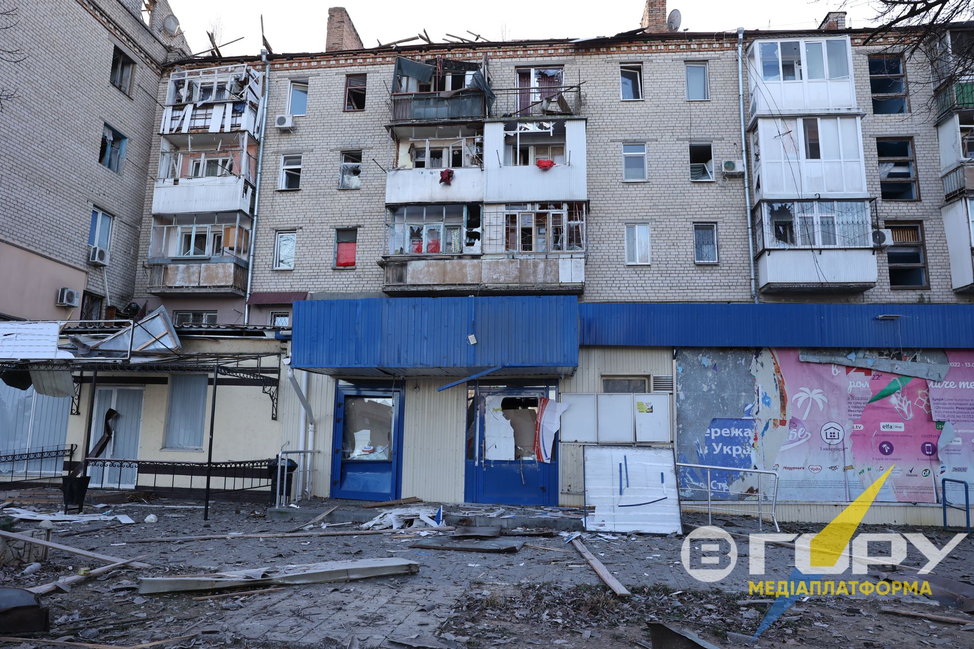 Від вибуху перекосило вхідні металеві двері до під’їзду, у деяких квартирах теж заплішило двері, люди не могли їх відчинити. Довелося гепати по них молотками. У Олександра пошкодило балкон, у його сусідів вибило вікна з рамами, у більшості осель вилетіли шибки. Майже одразу до будинку приїхало багато поліціянтів – обходили всі квартири, питали, чи все добре, чи ні.