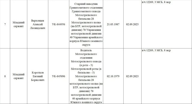 Мова про 8 мотострілецьку роту третього мотострілецького батальйону 28 окремого мотострілецького полку Росії. Саме ця рота згадується в скриншотах документів, які також були в телефонах росіян.