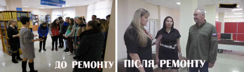 Наприклад, у серпні російські ЗМІ повідомили про ремонт у Новотроїцькому комплексному центрі соціального обслуговування. Реконструкція приміщень тут не проводилась, за словами окупантів, з 50-х років ХХ століття. Ось тільки за рік до повномасштабного вторгнення Комплексний центр вже ремонтувався, а відкривав його тоді теперішній “Міністр сільського господарства” окупованої частини Херсонщини, новотройчанин-колаборант Петро Збаровський.