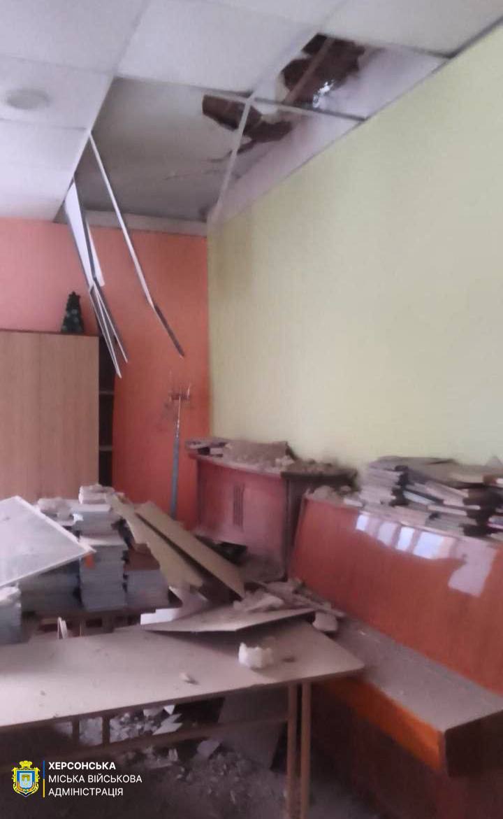 «Після 3.00 російські війська з тимчасово окупованого лівобережжя вдарили по Центральному району. Внаслідок влучання ворожого снаряду пробито дах будівлі одного із закладів освіти», - йдеться у повідомленні.