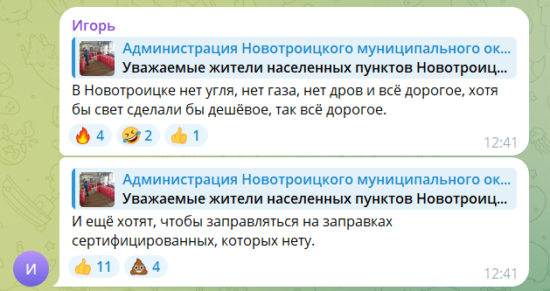 Колаборанти з окупованої громади, в свою чергу, повідомили, що що заправка газових балонів повинна провадитися тільки на сертифікованих газових станціях, призначених для заправки побутових балонів, а не на звичайних заправках, як це було раніше. В громаді “сертифікованих” станцій немає, тож забезпечити газом місцеве населення нікому.