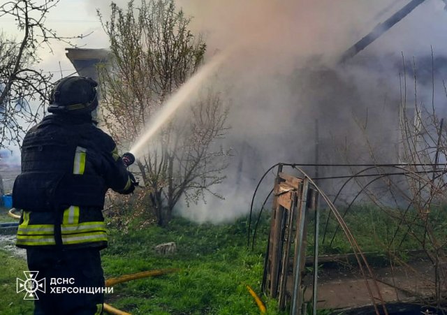 У населених пунктах Херсонського району внаслідок влучань боєприпасів горіли житловий будинок та нежитлова споруда. Окрім того, через ворожу атаку по одному з дачних кооперативів спалахнули дачні будиночки.