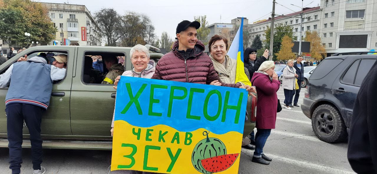 Боже, як ми бігли вулицею, як нам сигналили наші котики, що на пікапах заходили до Херсона. Це був такий драйв, це було таке щастя. Не інакше, що ти народився разом зі своїм містом. Ми просто одночасно народилися і раділи, що ми в Україні.