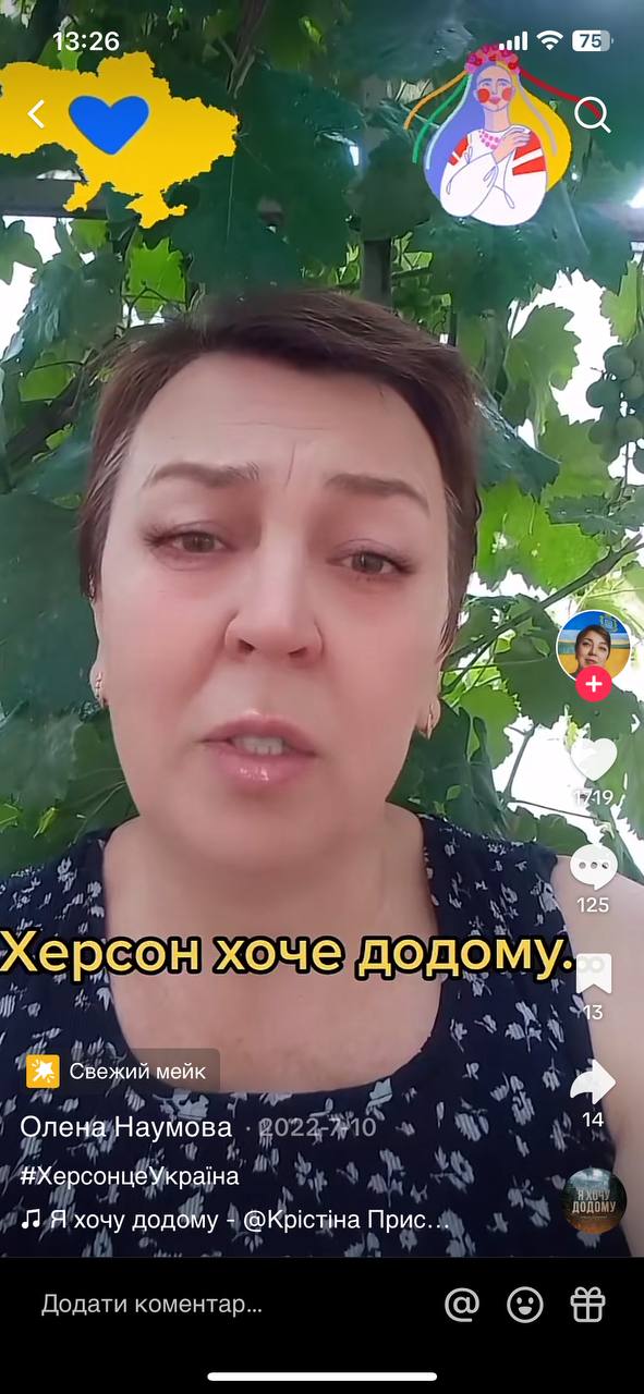 А після повномасштабного вторгнення, коли дитсадок перестав працювати, почала знімати стріми про мітинги в Херсоні, розповідала про життя окупованого міста.