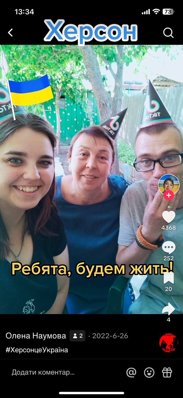Вихователька одного з дитячих садочків Херсона Олена Наумова ще до війни відкрила для себе мережу тік-ток. Вона почала знімати короткі відео й скоро стала блогеркою. Але популярність і народну любов принесли їй патріотичні стріми в окупації та допомога херсонцям, які залишалися в захопленому армією РФ місті.
