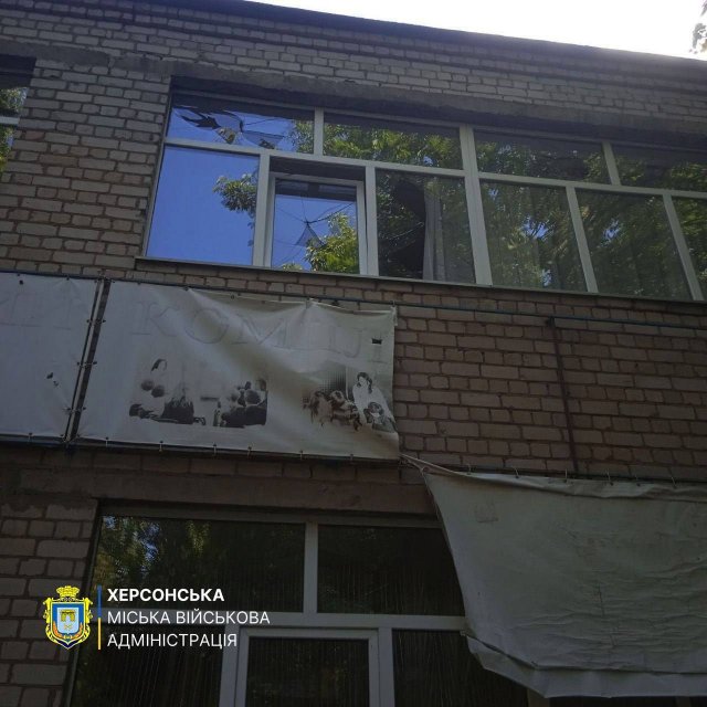 Російські терористи продовжують завдавати ударів з різних видів озброєння по житлових кварталах Херсона, соціальній та критичній інфраструктурі.Як повідомила Херсонська МВА, учора після 21.00 ворог з дрона поцілив по навчальному закладу у середмісті.