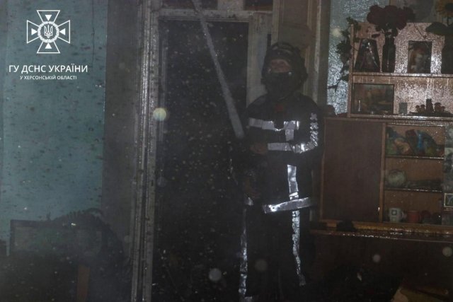 "Вночі херсонці прокинулись від потужних вибухів. Один з ворожих снарядів влучив в багатоквартирний житловий будинок, в двох квартирах на другому поверсі почалася пожежа", - сказано в повідомленні.