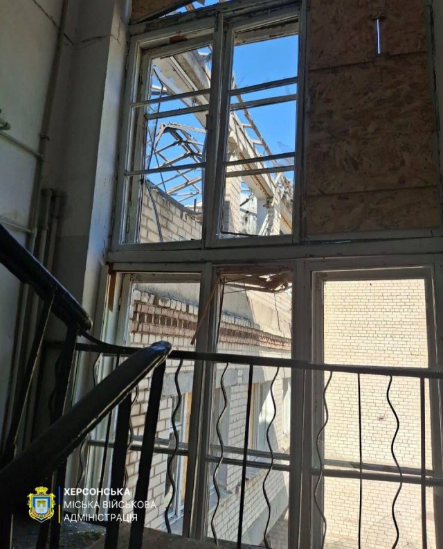 Російські терористи продовжують завдавати ударів по навчальних закладах Херсона.Про це повідомла у Фейсбук Херсонська МВА.