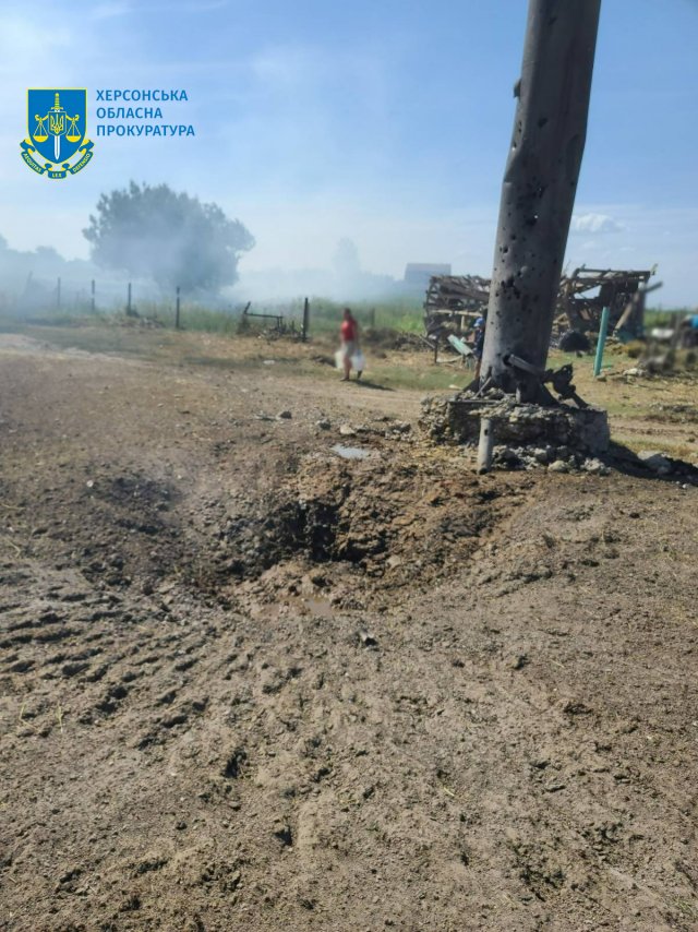 Надвечір ворожі війська атакували село в Бериславському районі, травмовано місцевого жителя. За попередніми даними, обстріл мирного поселення здійснювався керованими авіабомбами.