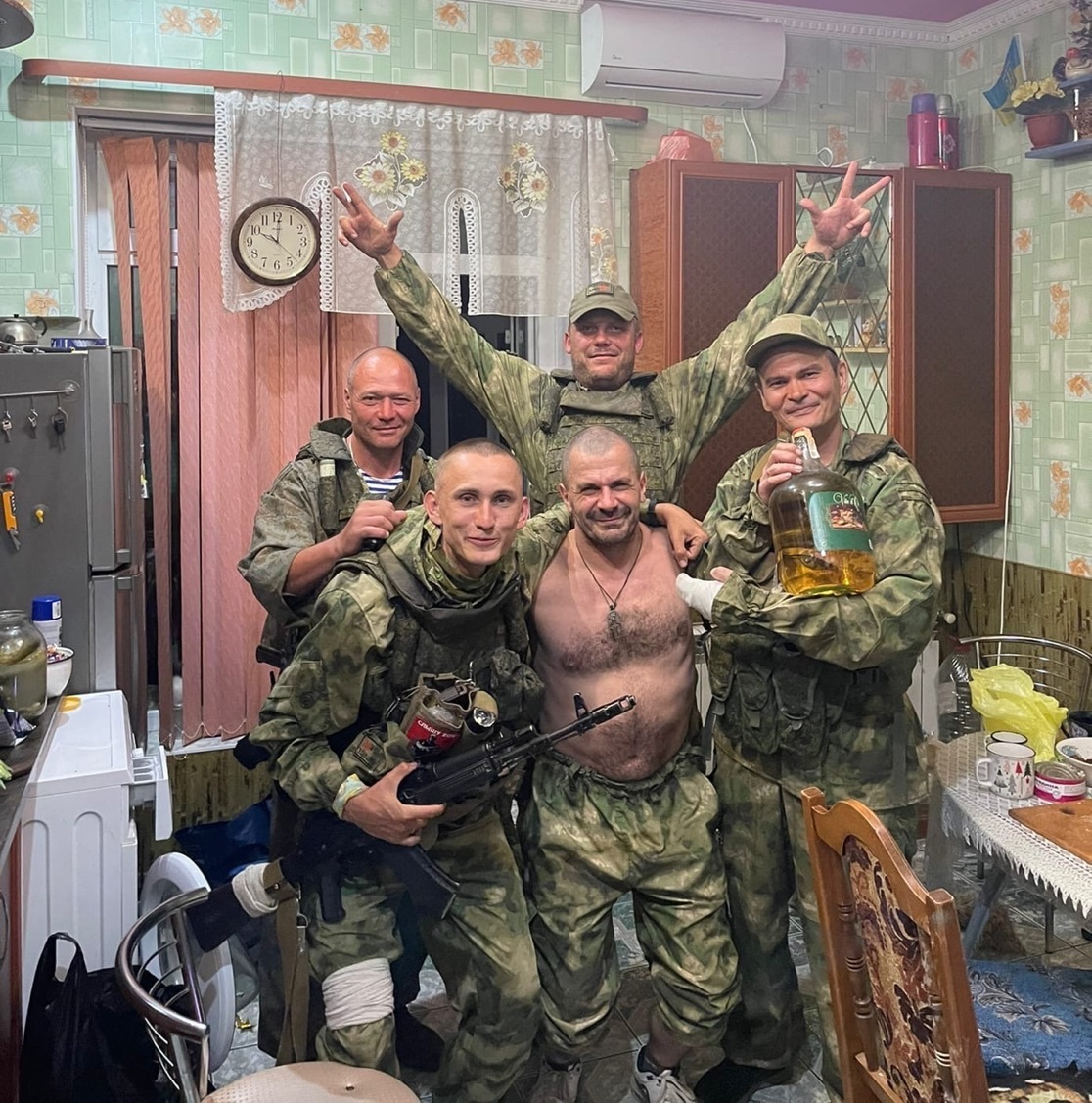 Станіслав Асонов (з автоматом) та інші військові РФ у пограбованому ними приватному будинку в Білозерці. Фото з соцмережВиїжджаючи з цього будинку в червні 2022 року окупанти розграбували його. Вони вкрали телевізори, газову плиту, холодильники, морозильну камеру, п’ятилітрову пляшку вина, дві пляшки бренді та інше майно на загальну суму близько 230 тисяч гривень.