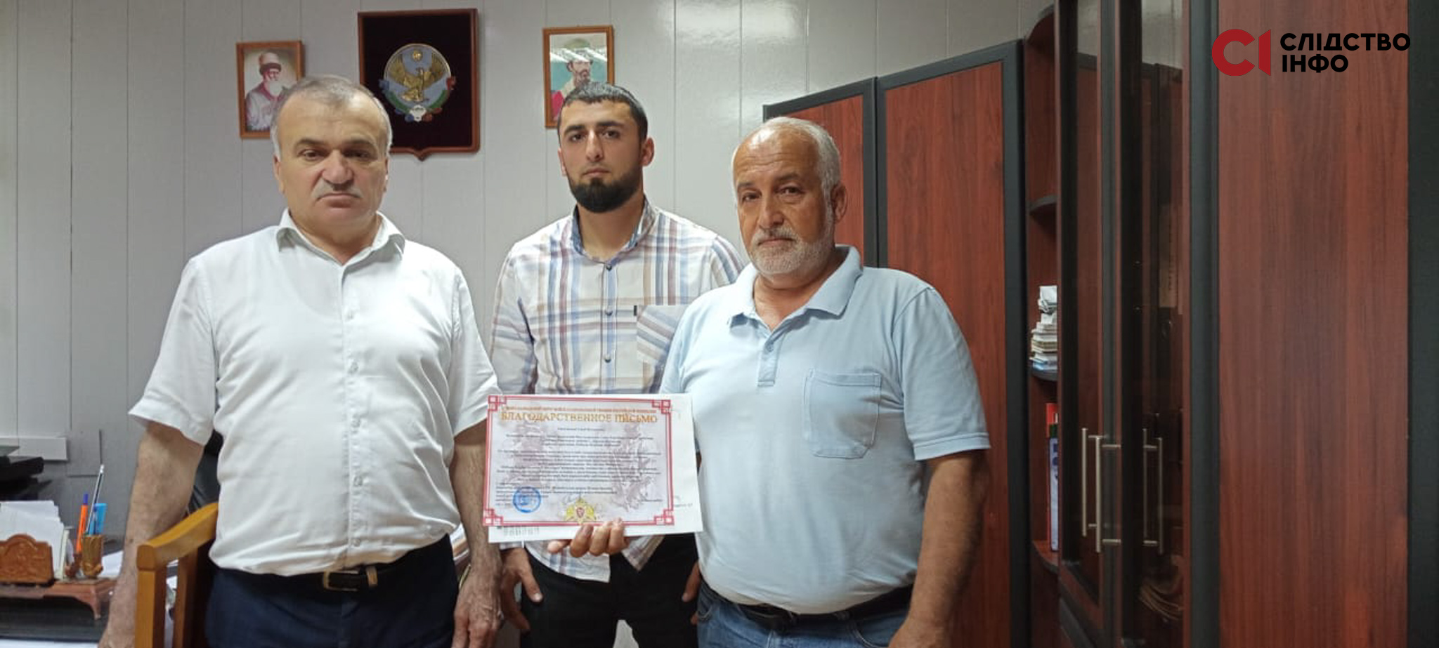 Після того, як росіянин знущався з цивільних українців на Херсонщині, він поїхав до Росії, де отримав подяку за свої вчинки. Окупант з радістю фотографувався з головою району, який ставить Небієва у приклад іншим росіянам.