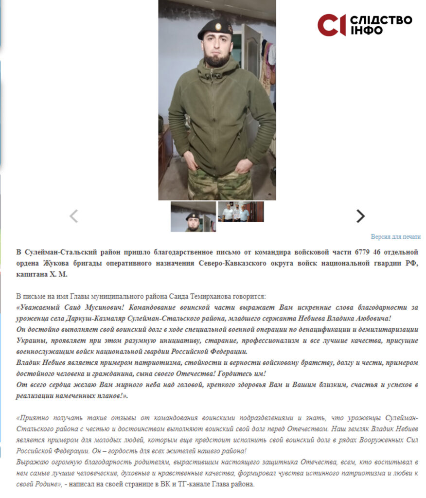 30-річний Владік Небієв родом з Сулейман-Стальського району, села Даркуш-Казмаляр (Республіка Дагестан). Військовий РФ подолав майже 1700 км, щоб ґвалтувати й вбивати українців.