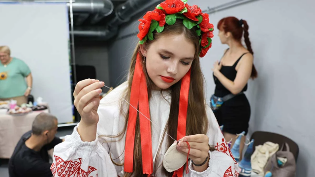 Також одна з майстринь в'яже шкарпетки для українських військових.