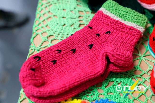 Там можна було побачити, в'язані та вишиті роботи, прикраси, розмальовані тарілки, ляльки мотанки, вироби із бісеру та свічки. Дівчата шили іграшки, були розписані мушлі.