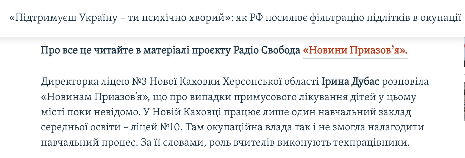 Після публікації новини у "Вгору" з посиланням на матеріал проєкту Радіо Свобода «Новини Приазовʼя» про те, як окупанти шукають дітей і насильно віддають їх в окупаційні школи з російською освітньою програмою, в окупантських соцмережах з'явилися спроби заперечити цю інформацію. Що в цьому “спростуванні” не так – розбираємося.