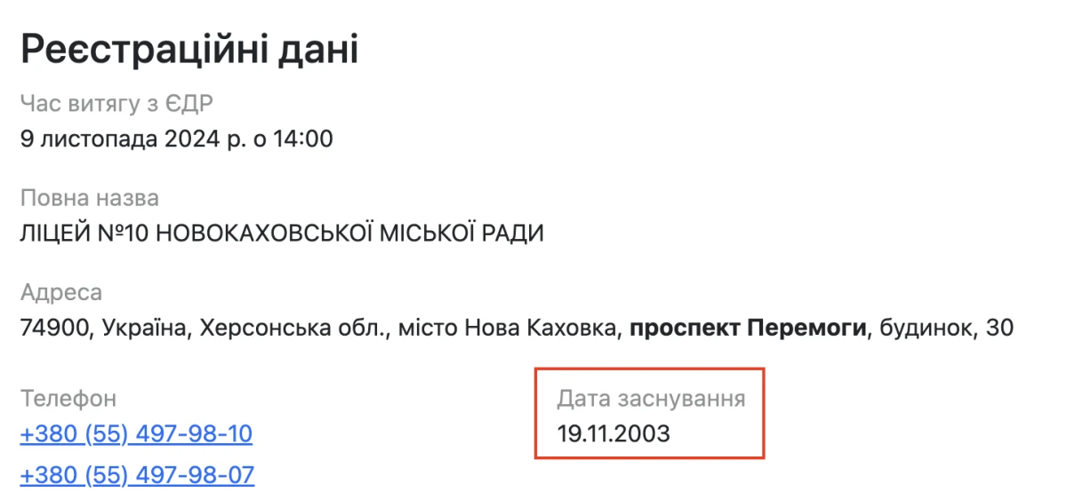 Як ми бачимо, “директором”, а вірніше “керівником юридичної особи” “школи №10” окупанти назначили колаборантку Юлію Тютюрятник – ймовірно, за те, що вона допомагала їм проводити незаконний референдум. Наразі окупанти перереєстровують заклади, використовуючи справжні дати заснування закладів замість дат, які вказують на окупацію – тобто, крадуть усе.