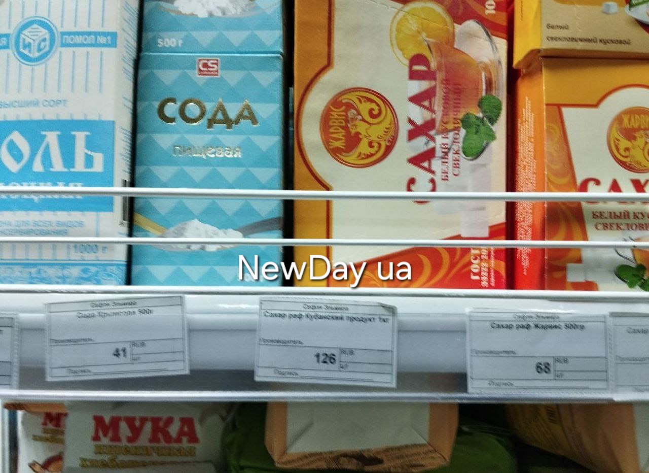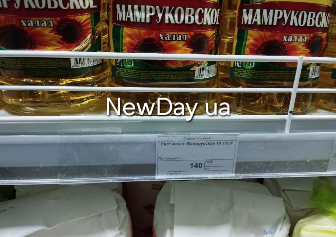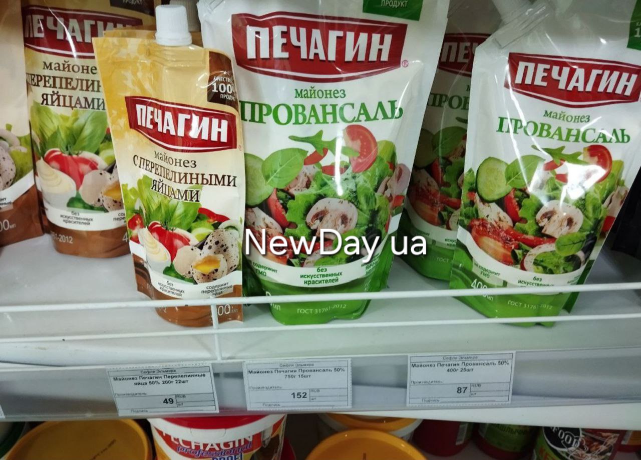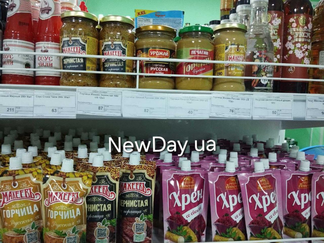 Яка різниця між «придбати» і «купити», з’ясовувати не будемо. Давайте краще «подивуємось» разом з нерозумним зрадником асортименту «певних» продуктів. Ти бач, «навіть» вода і риба є! А звідки ж цікаво з’являються продукти у тому та інших магазинах окупованого лівобережжя?