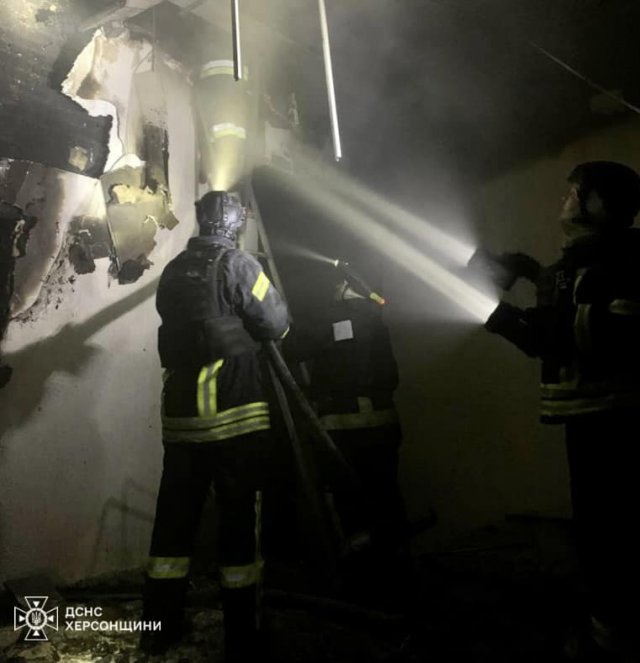 Фото наслідків атаки оприлюднили у соціальних мережах ДСНС Херсонщини.