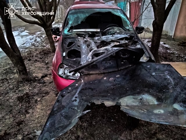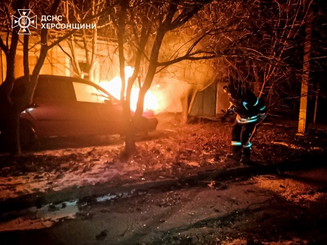 Цієї ночі, через влучання ворожих боєприпасів, загорівся легковий автомобіль в одному з районів міста Херсон.Про це інформує пресслужба ДСНС Херсонської області.