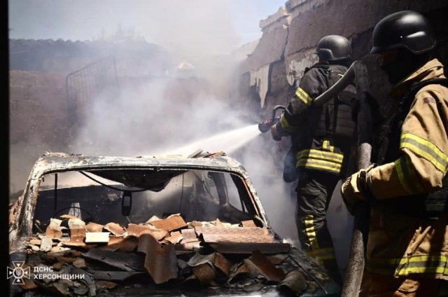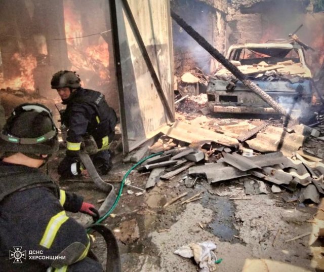 Сьогодні вдень ворог атакував Херсон та його околиці.Пожежі виникли одразу за трьома різними адресами. Горіли житловий будинок, господарча споруда та гаражні приміщення.