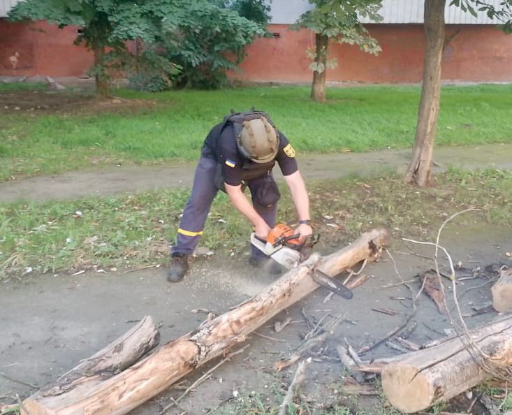 Так, сьогодні в одному з районів міста фахівці служби порятунку провели відкачку води з підтоплених підвальних приміщень приватних будинків та розчистили повалені дерева.