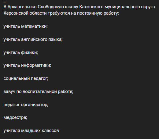 “Губернатор” зазначив, що області необхідні, у першу чергу, історики та викладачі природничих наук, хоча, звичайно “ситуація покращується”. Завдяки чому відбуваються ці “покращення” – Сальдо не пояснює. Місцеві педагогічні ВИШі фактично не працюють, а вчителі з Росії не поспішають їхати працювати на Херсонщину.