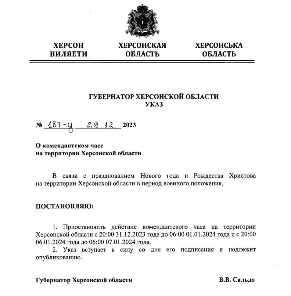 Сальдо змінив умови комендантської години на лівобережжі Херсонщини