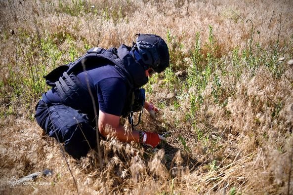 Деокупована частина Херсонщини просто всипана різноманітними мінами та вибуховими пристроями, що залишив по собі ворог.Сапери ДСНС кожного дня проводять колосальну роботу очищаючи звільнені території. З початку робіт піротехніки ДСНС України виявили та знешкодили 46 756 вибухонебезпечних предметів. Роботи тривають.