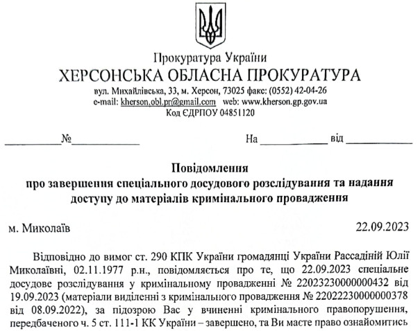 СБУ завершила розслідування щодо директорки “департаменту фінансів” Херсонщини