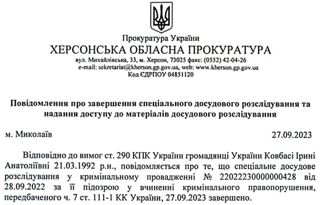 СБУ завершила розслідування щодо “експертки-криміналістки” окупаційної поліції Херсонщини