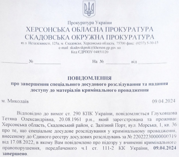 За це Глуховцовій заочно загрожує від 10 до 12 років в’язниці (з додатковими обмеженнями та конфіскацією майна або без такої).