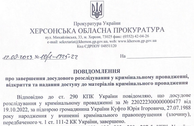 Куфто інкримінували пособництво державі-агресору. Подробиці звинувачень проти нього невідомі.