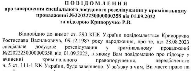 Криворучко інкримінували колабораціонізм. Він пішов на співпрацю з росіянами не пізніше липня 2022 року.