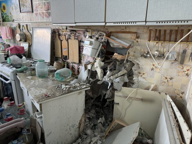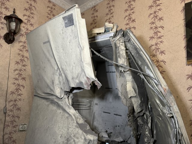 Внаслідок ранкового обстрілу середмістя Павло Темерязанцев та його дружина Любов отримали поранення. Перші вибухи почули близько 5:30, каже чоловік."Ось тут я на ліжку спав. А дружина була на кухні, посуд мила. Засипало ноги. Оце хазяйки був новий холодильник. І він через холодильник снаряд туди пролетів і у другий холодильник на кухні потрапив", — розповів Павло.