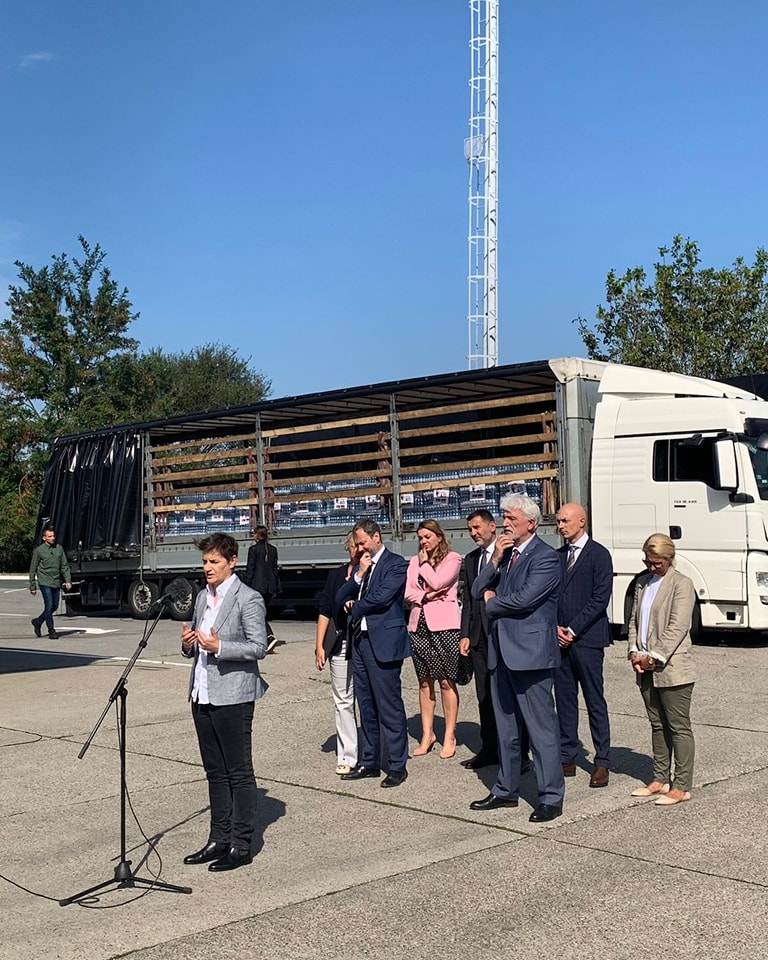 На брифінгу перед відправкою вантажу з короткими промовами виступили очільниця сербського уряду та глава Делегації ЄС в Республіці Сербія Е.Жофре, які запевнили у незмінності своїх намірів та рішучості й надалі надавати необхідну допомогу українському народу в трагічні дні російської навали.
