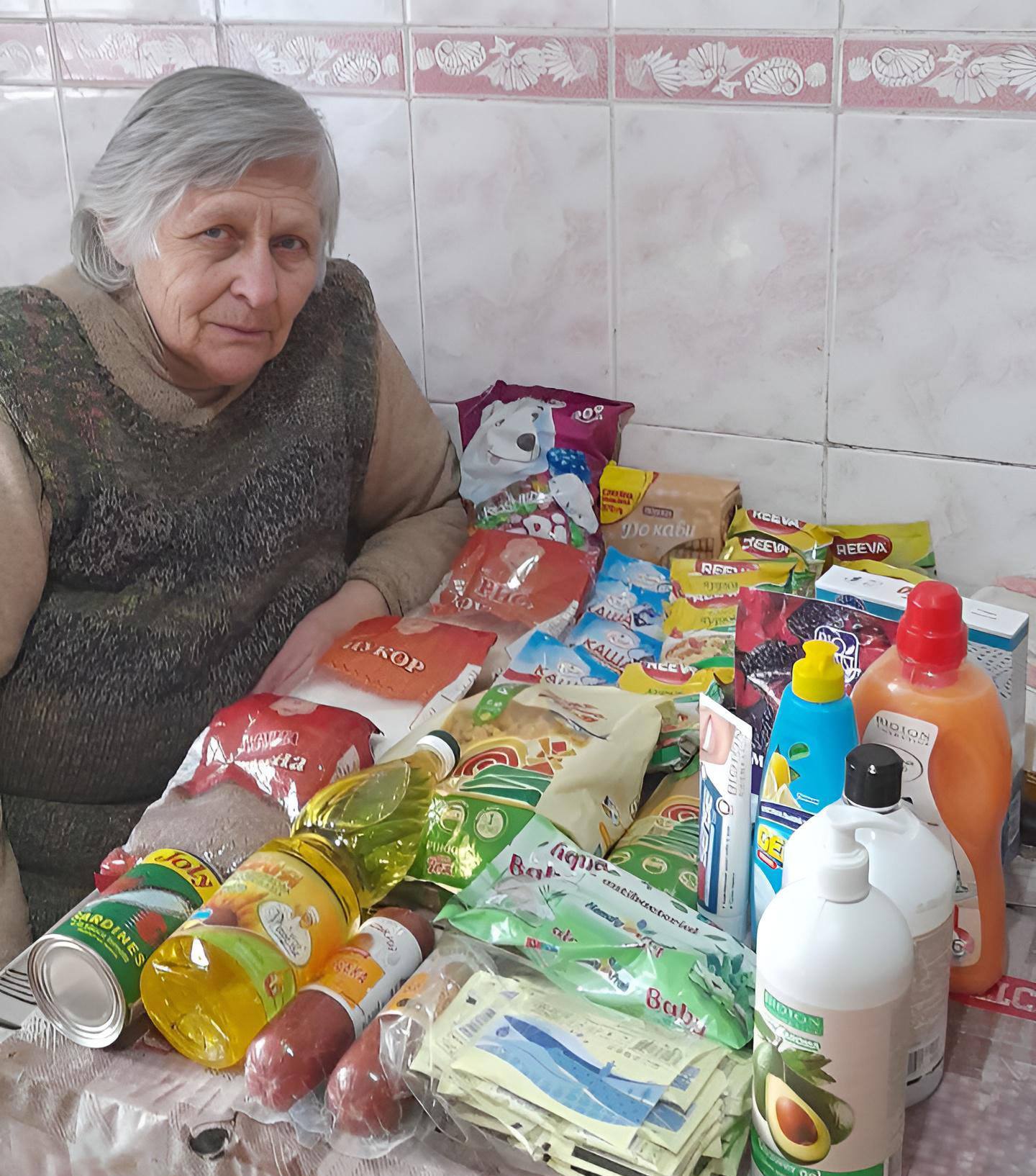 Жителька Антонівки з гуманітарною допомогою