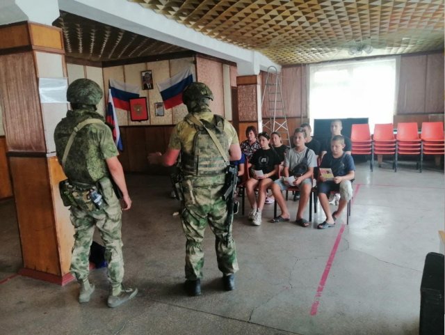 В окупаційному Сиваському селищному будинку культури Новотроїцького «муніципального округу» педагоги-колаборанти з школи № 1 разом з бійцями Росгвардії провели для дітей інструктаж стосовно правильного поводження з вибухівкою.