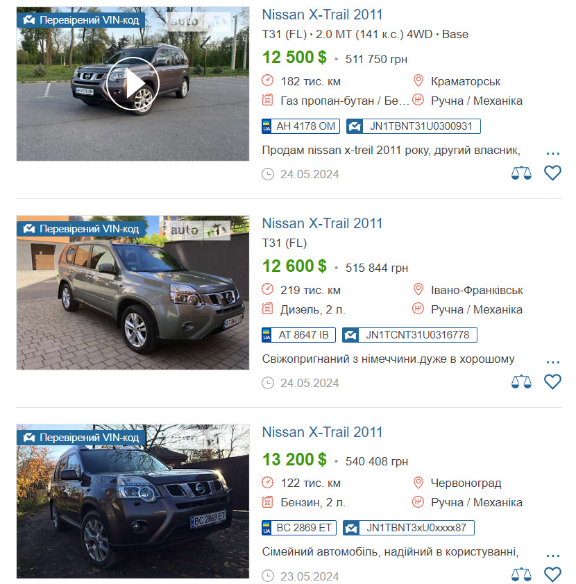 Вартість авто на профільному сайті. Джерело: auto.ria.com