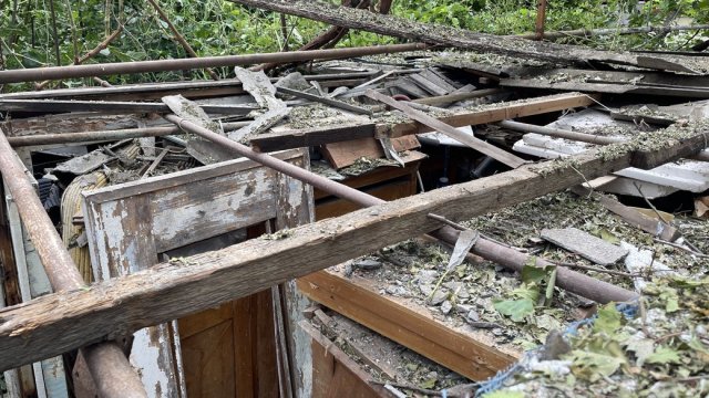 Пошкодило дах, в основному. Щось із дрона скинули: чи гранату, чи бомбу якусь. Побило дерева, виноград — все облетіло. Хата ціла, а у прибудові, де ванна і кухня, шифер побитий", — сказав чоловік.