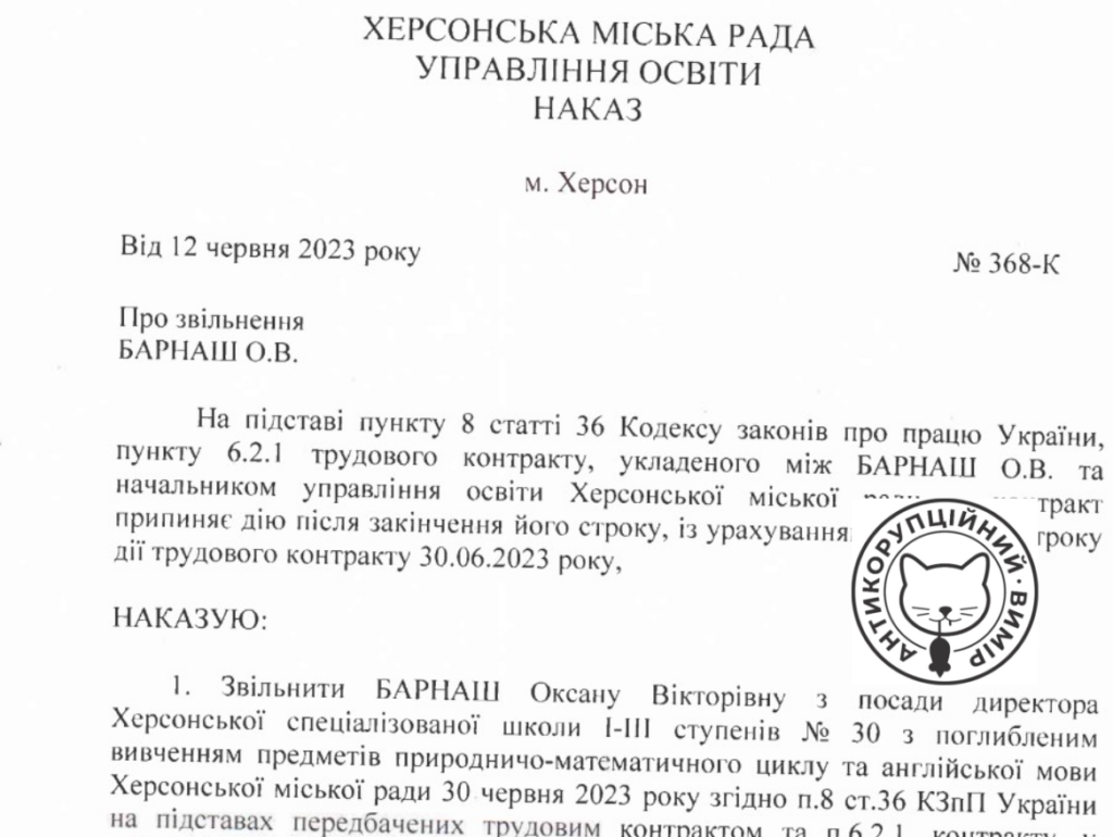 Справу Барнаш про державну зраду вже передали до суду, вона не в Україні. Її чоловік – відомий в минулому у Херсоні лікар – працевлаштувався у Санкт-Петербурзі. Про Оксану Барнаш ходили чутки, що вона то в Росії, то в Іспанії. Втім, 15 липня 2022 року вийшов «документ» так званої ВГА Херсонской области «О создании государственных бюджетных образовательньх учреждений Херсонской области» створено «государственное бюджетное образовательное учреждение «ГБОУ Херсонской области «Школа №30 города Херсона» на базі цілісного майнового комплексу комунального закладу Херсонської спеціалізованої школи 1-ІІІ ступенів № 30. Очолила цей заклад Оксана Барнаш. Цим же папірцем окупанти наказали провести інвентаризацію у школі.