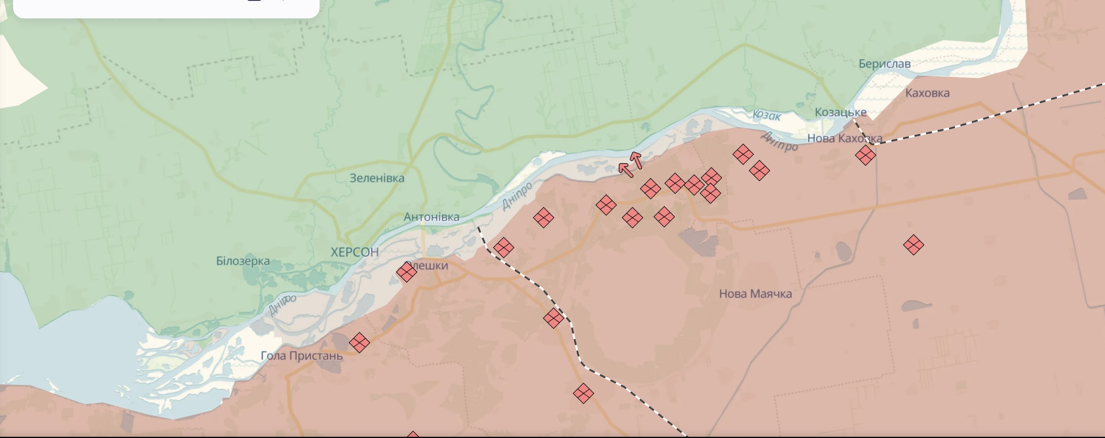 На Придніпровському напрямку противник здійснив дві штурмові дії – в бік Антонівського мосту та острова Білогрудий.
