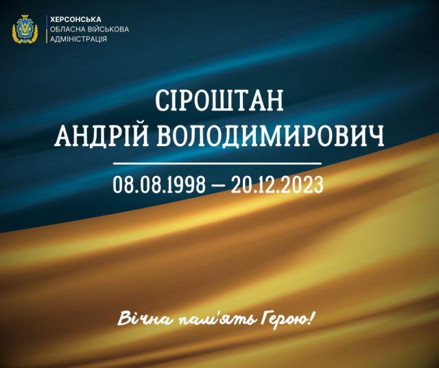Боронячи українську Донеччину поліг молодший сержант Андрій Сіроштан. Останній бій з російськими загарбниками 25-річний Захисник прийняв 20-го грудня поблизу населеного пункту Кліщіївка.