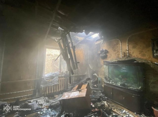Через влучання боєприпасу пошкоджено дах житлового будинку та виникло загорання понівечених конструкцій.