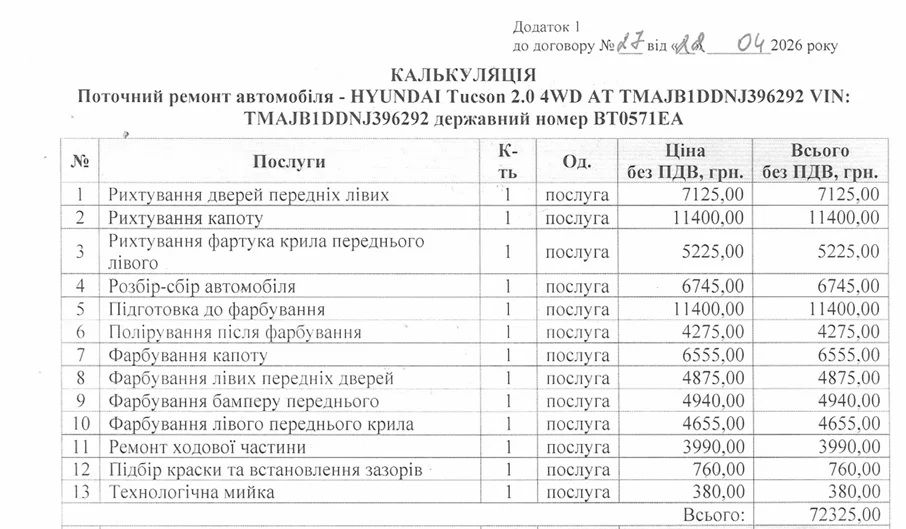 Станіславська сільська рада уклала договір на ремонт і техобслуговування службового автомобіля HYUNDAI Tucson 2.0 на 205 296 гривень